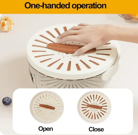 - Features a hollow mesh lid with easy-to-open knobs for efficient washing and draining.